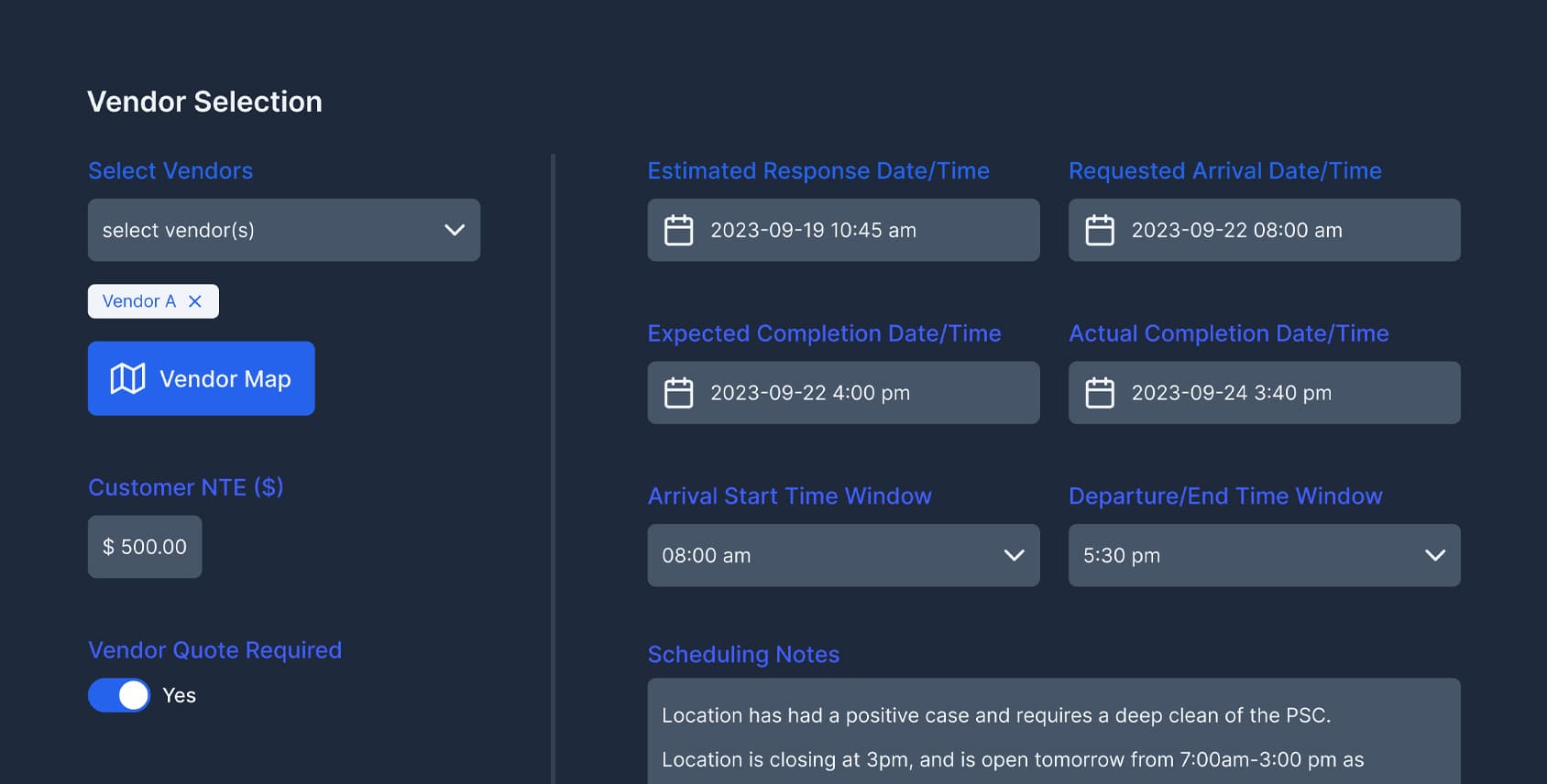 Vendor management is simplified through SMART FS software. It helps you maintain a database of vendors, track their performance, manage contracts, and even automate the process of sending work orders and receiving invoices from vendors.